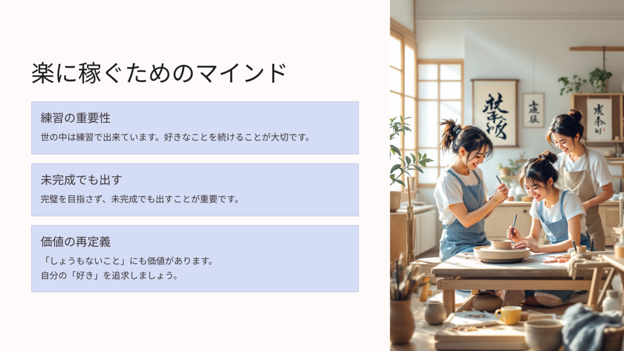 きっと、それまで思いもよらなかった、あなたなりの「稼ぎ方」が見つかるはずです。