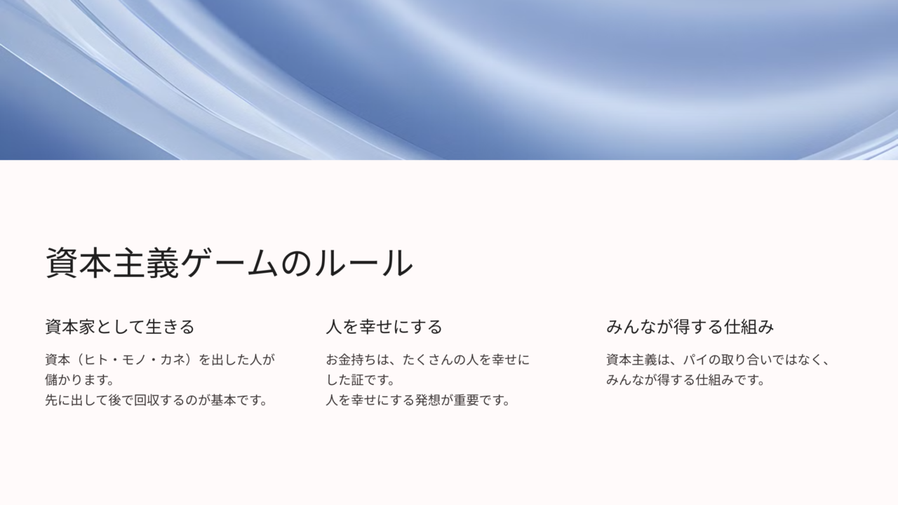 この「資本主義ゲーム」を理解することが、お金持ちになるための第一歩なのかもしれません。