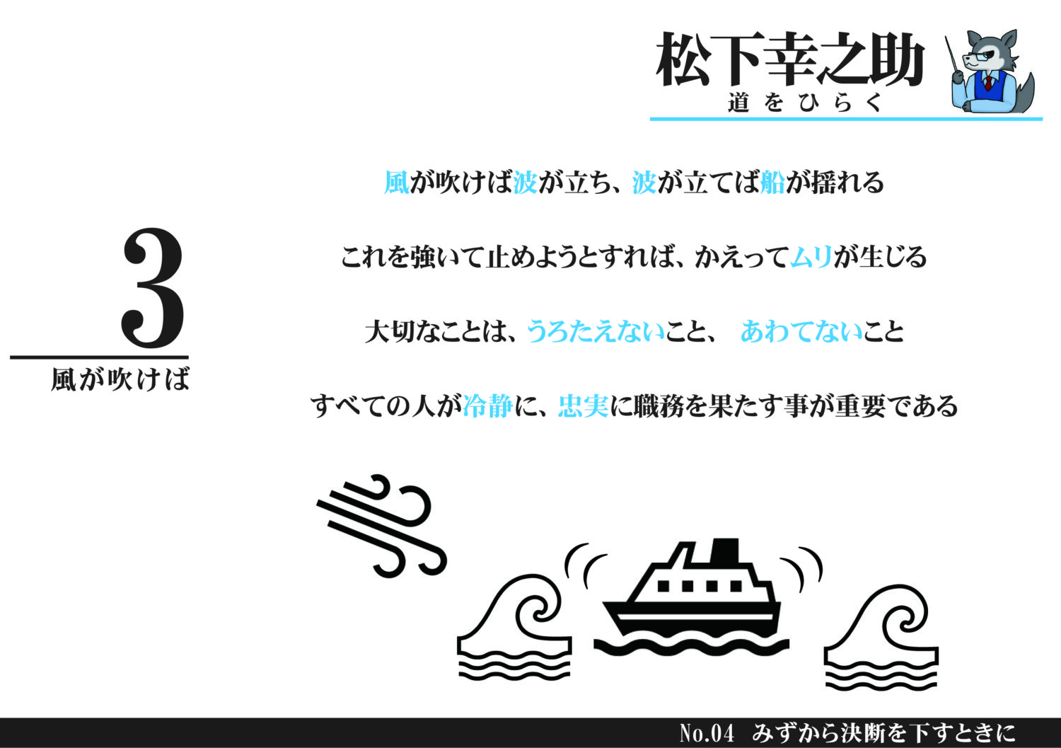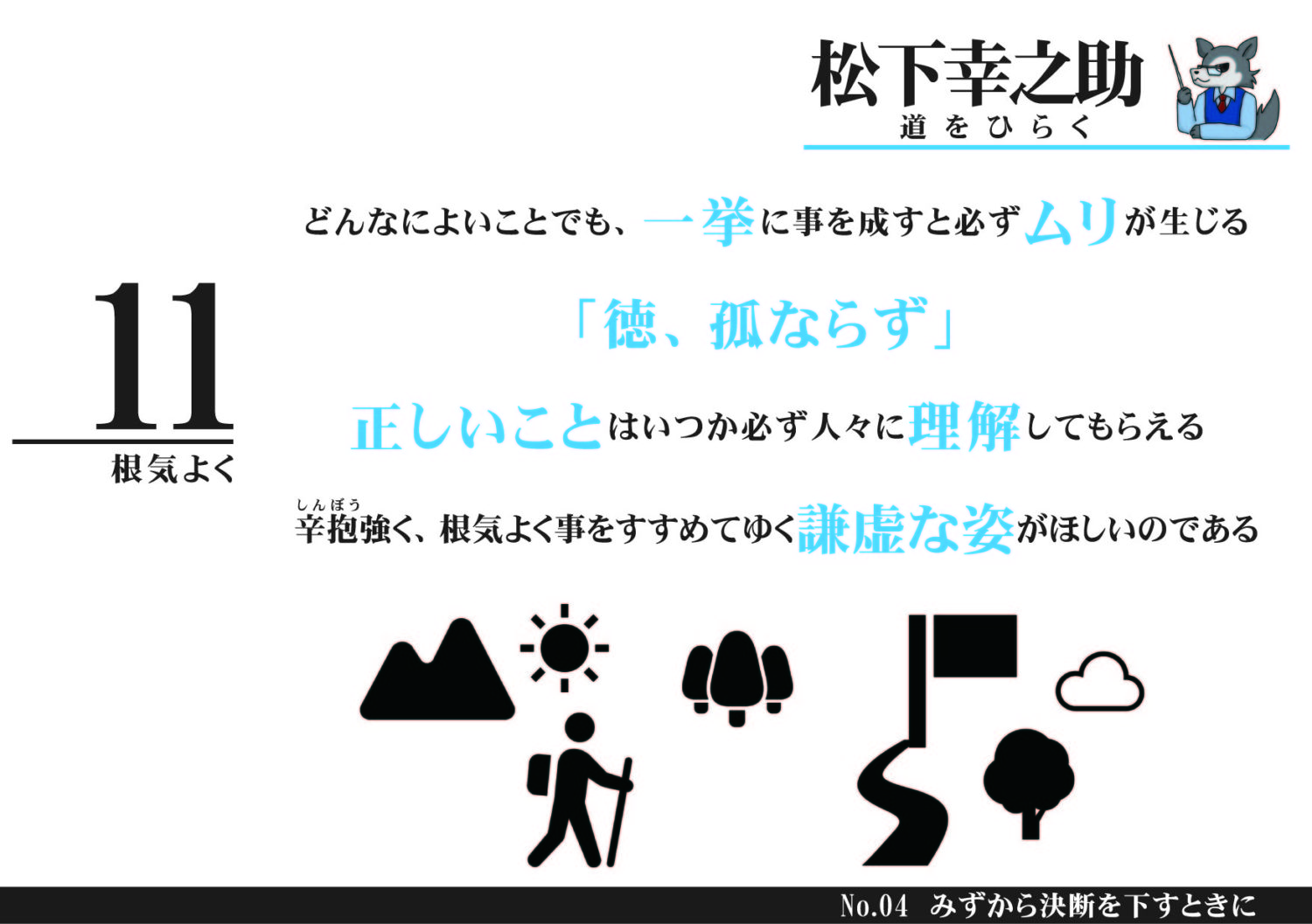「進むもとどまるもよし、まず断を下せ…」松下幸之助『道をひらく 』名言を図解化!
