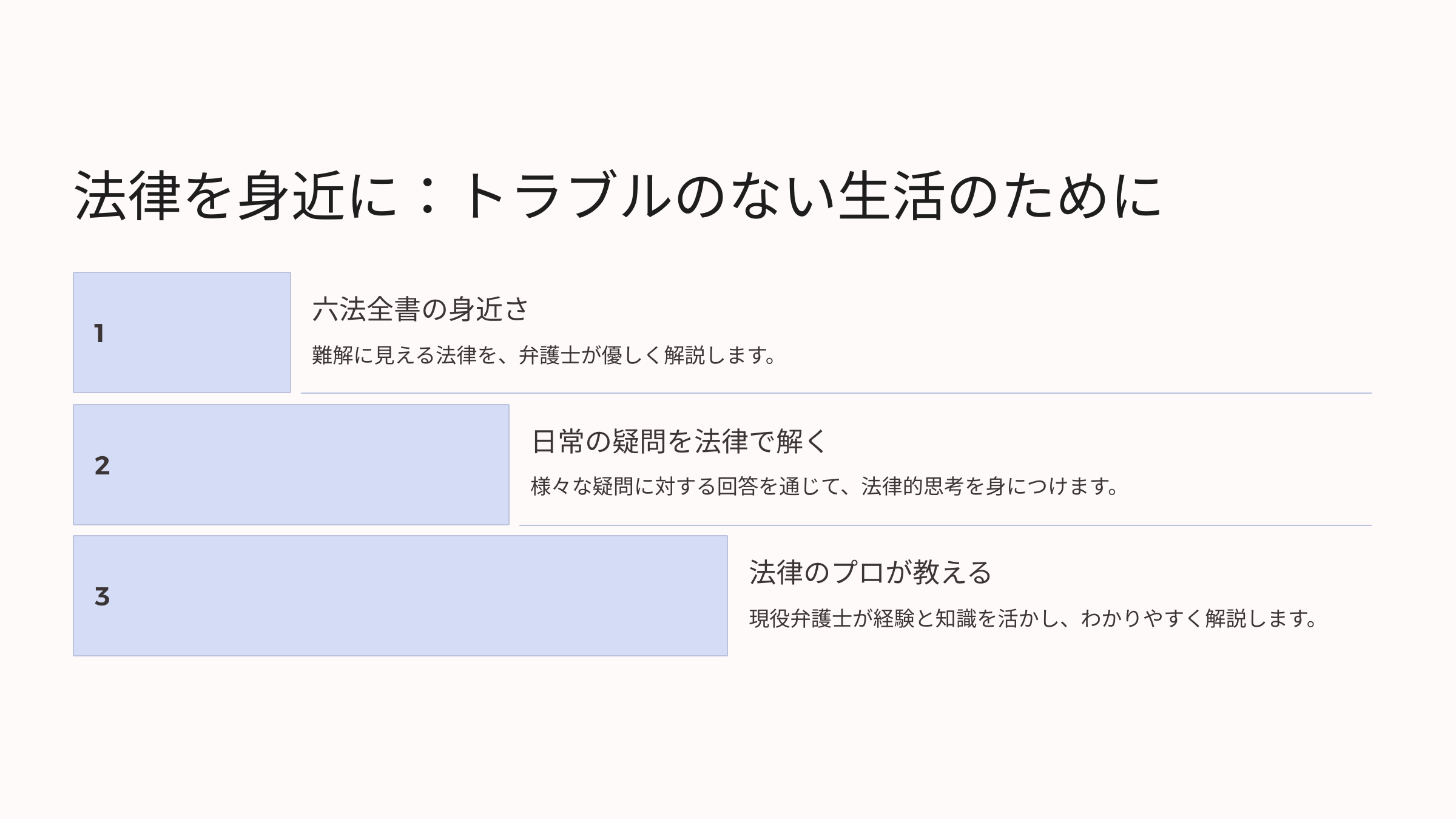 これは、「法律へのハードル」を下げる、非常に有効な手段です。