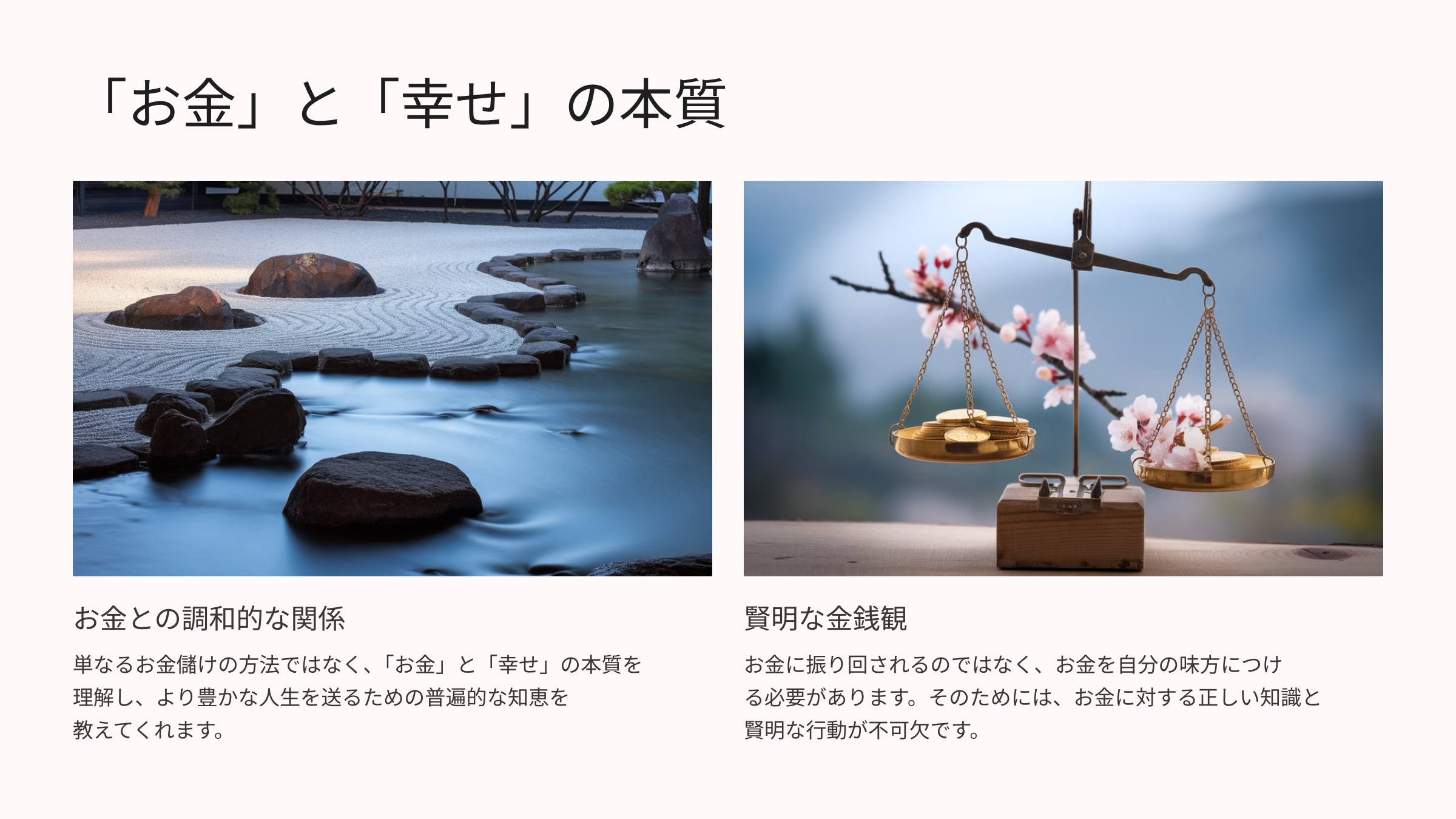 それは、私たちが「お金」と「幸せ」の本質を理解し、より豊かな人生を送るための、普遍的な知恵を教えてくれる本です。