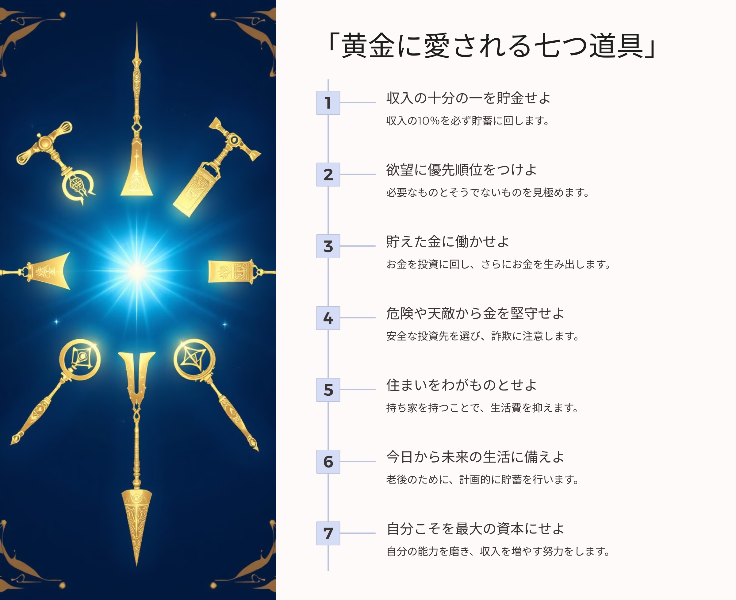 これらの道具は、お金を貯めるだけでなく、お金を増やす、そして守るための知恵を教えてくれます。