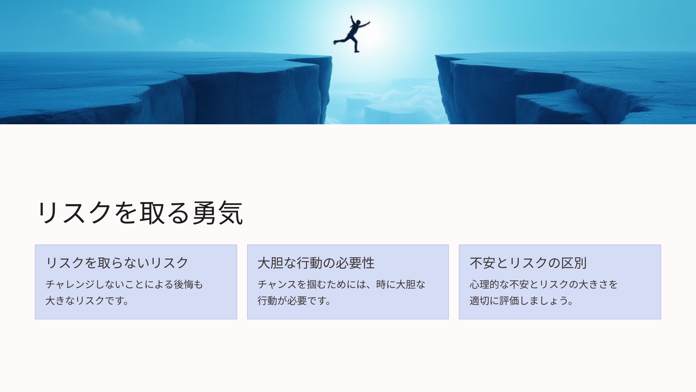 「もし、あの時、チャレンジしていれば…」という後悔は、「リスクを取らないリスク」の代表例です。