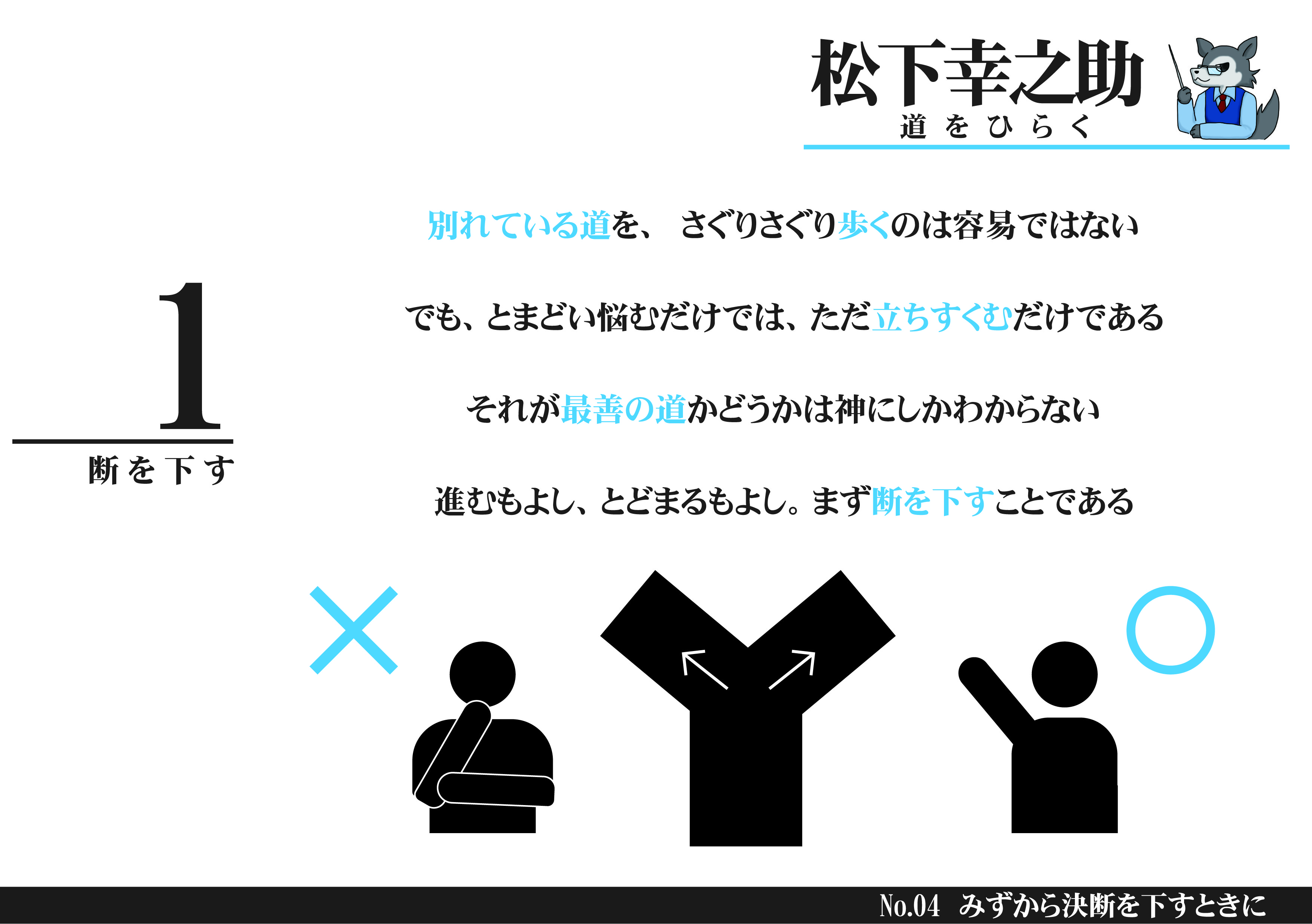 「進むもとどまるもよし、まず断を下せ…」松下幸之助『道をひらく 』名言を図解化!