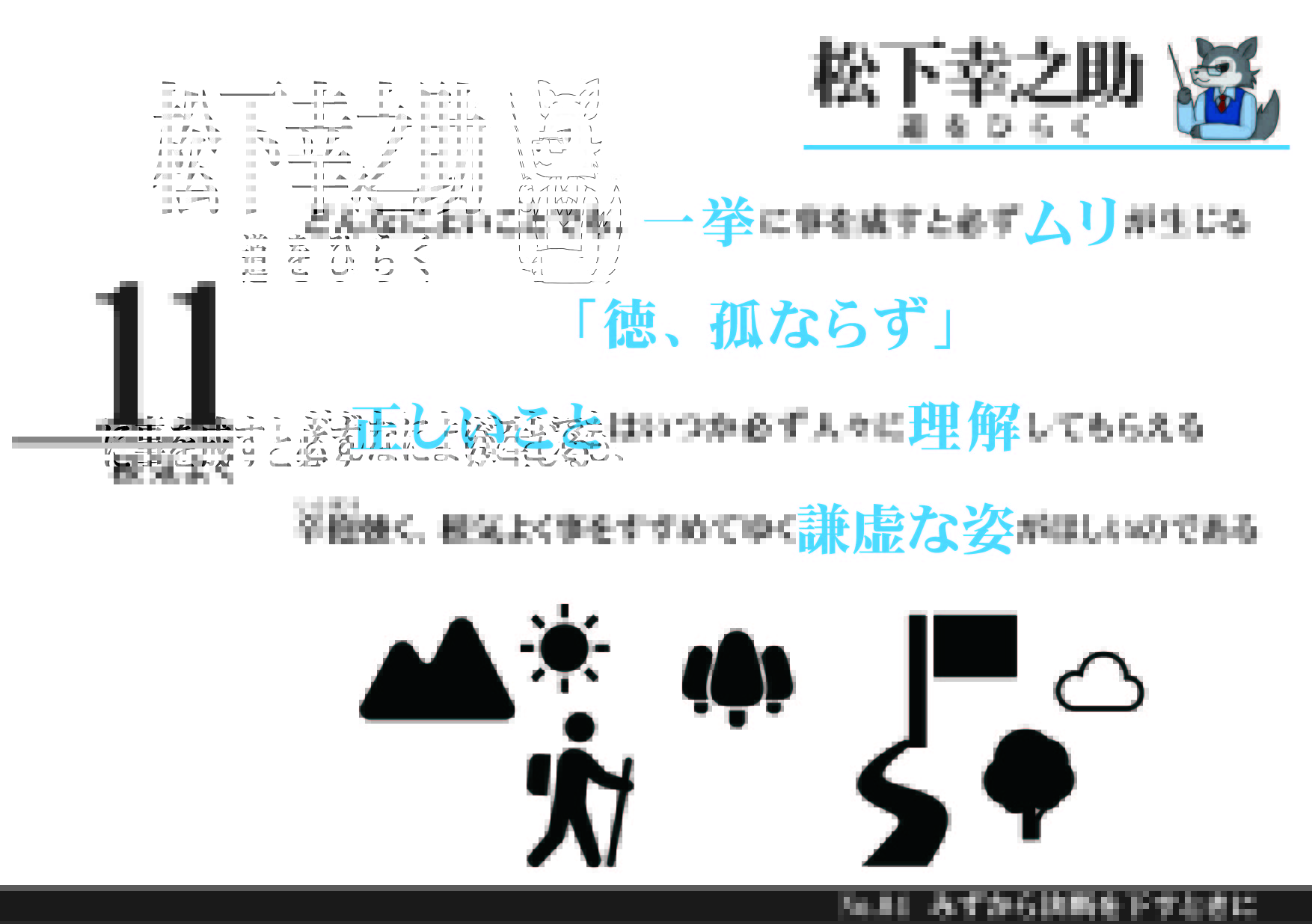 「あなたにはあなたの道がある…」松下幸之助『道をひらく 』名言を図解化!パナソニック創業者 松下幸之助著『道をひらく』1章を図解化!発行520万部の本書は名実ともに日本一の自己啓発書!ビジネスマンだけでなく政治家や運動選手にもファンが多くモデルの押切もえさんも愛読されています!ぜひ図解を通じて、松下幸之助さんの考え方に触れてみてください!...