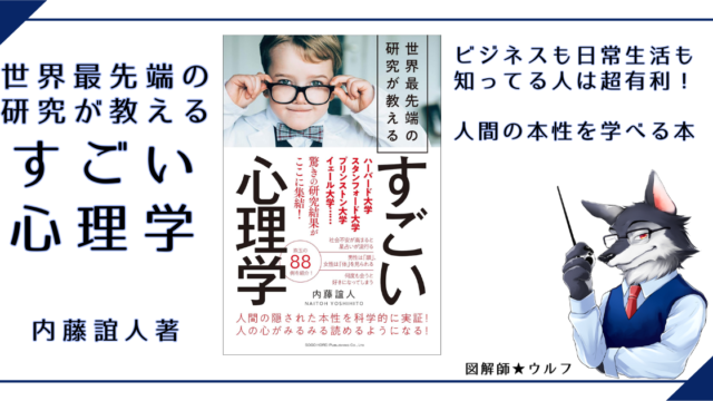 書籍 【図解で説明】『すごい心理学』~世界最先端驚きの研究結果!ビジネスに役立つ心理の秘密 2024-12-22 diagram-wolf https://www.diagram-wolf.com/wp-content/uploads/2019/02/ブログヘッダー図解の世界c.jpg 図解師★ウルフの『図解の世界!』