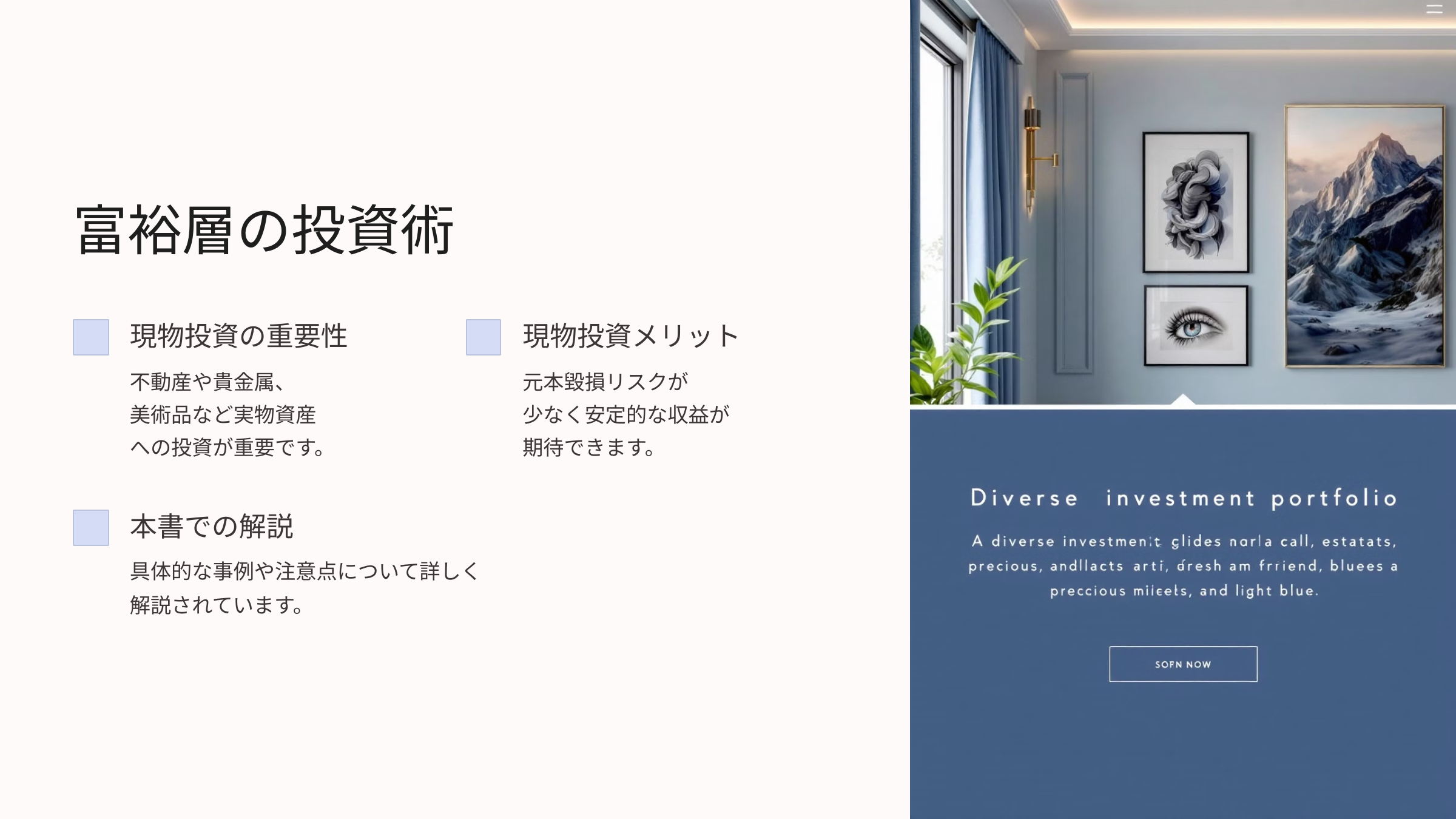 これは、単なる「お金の運用」ではなく、価値ある資産を所有することで、より安定した資産形成を目指すものです。