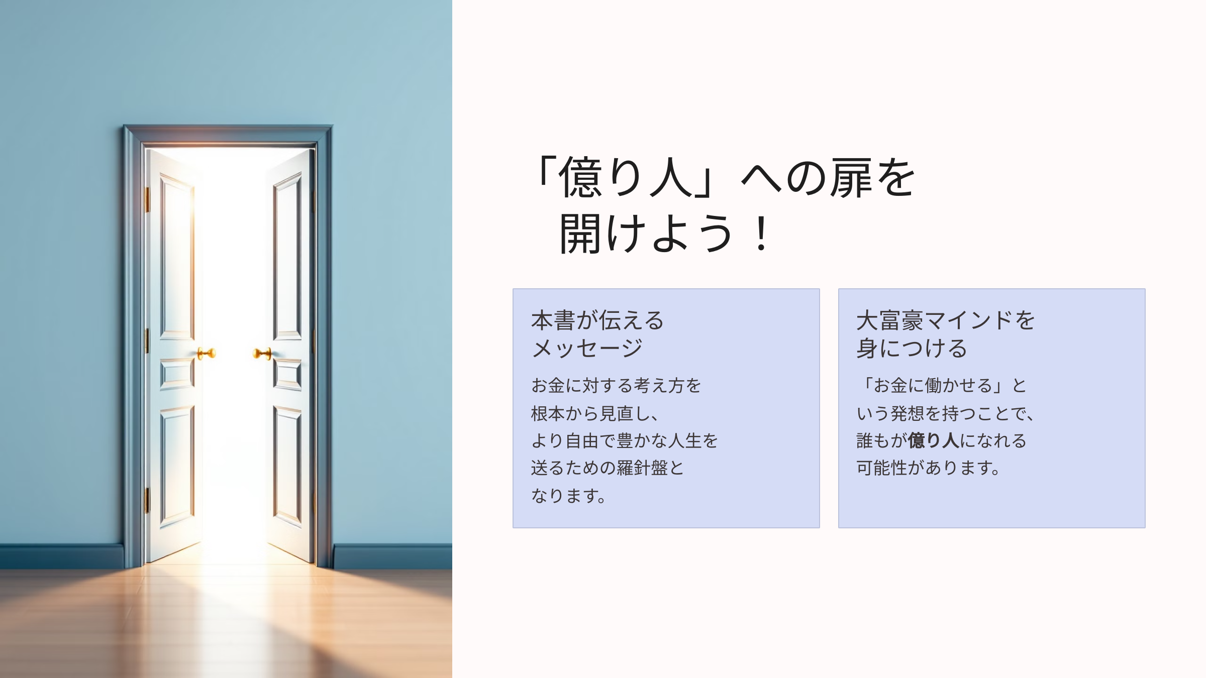 それは、私たちが「お金に対する考え方」を根本から見直し、より自由で豊かな人生を送るための羅針盤となる一冊です。