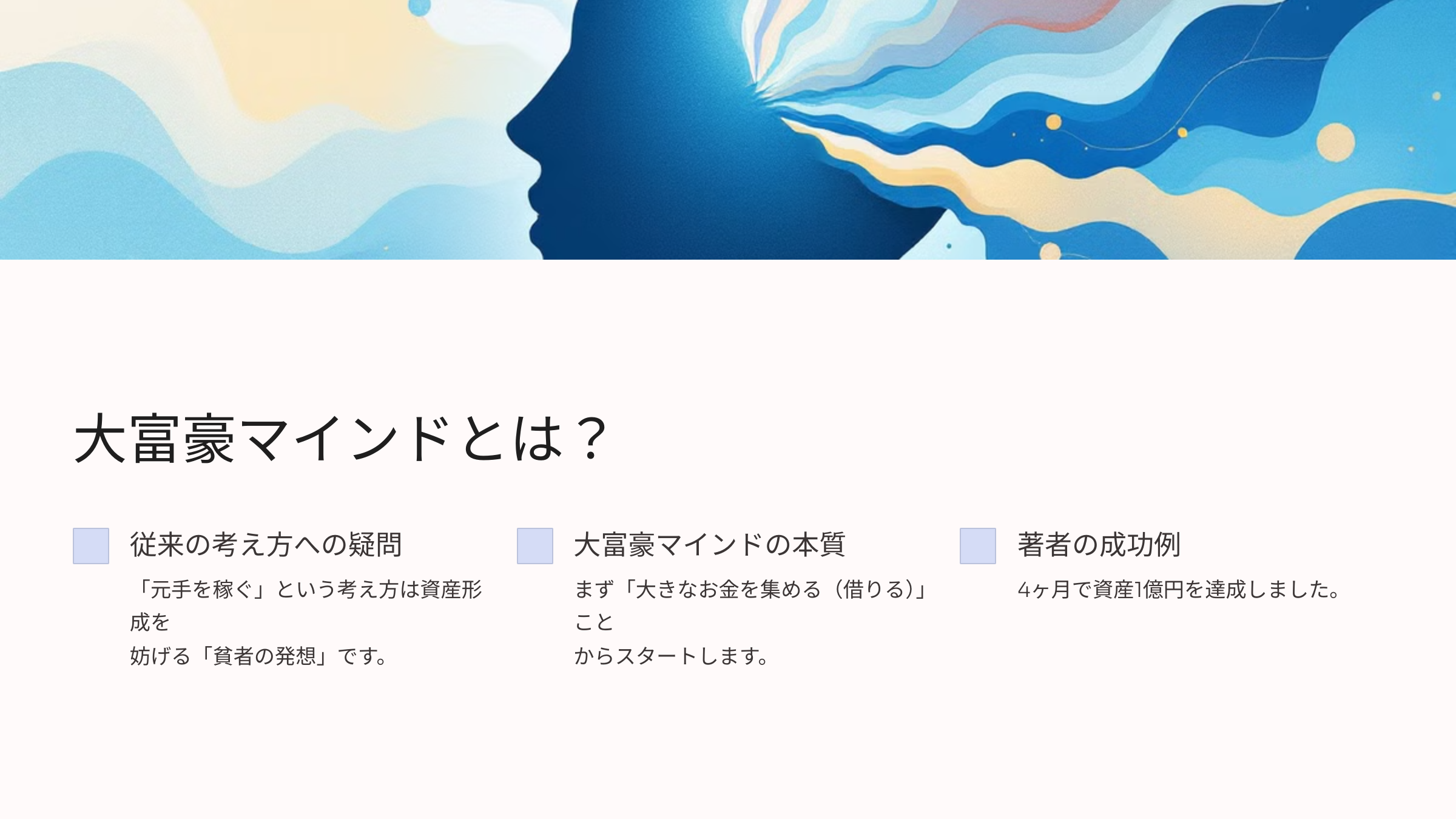 しかし、本書では、この「借金」をレバレッジとして活用することで、より効率的に資産を増やしていく方法が解説されています。