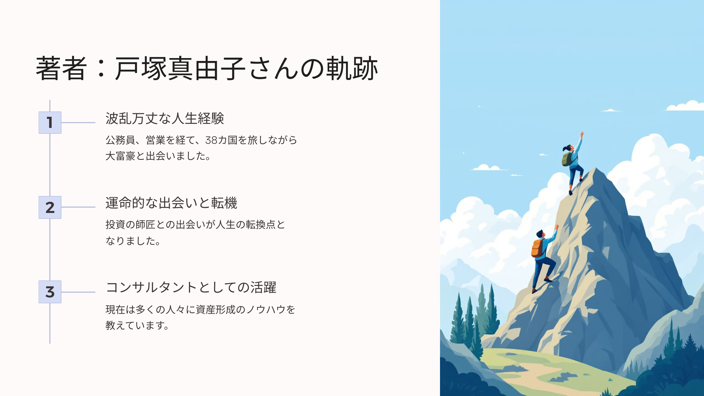 彼女は、自身の成功体験をもとに、体系的なノウハウを構築し、多くの人々に、資産形成の道を示しています。