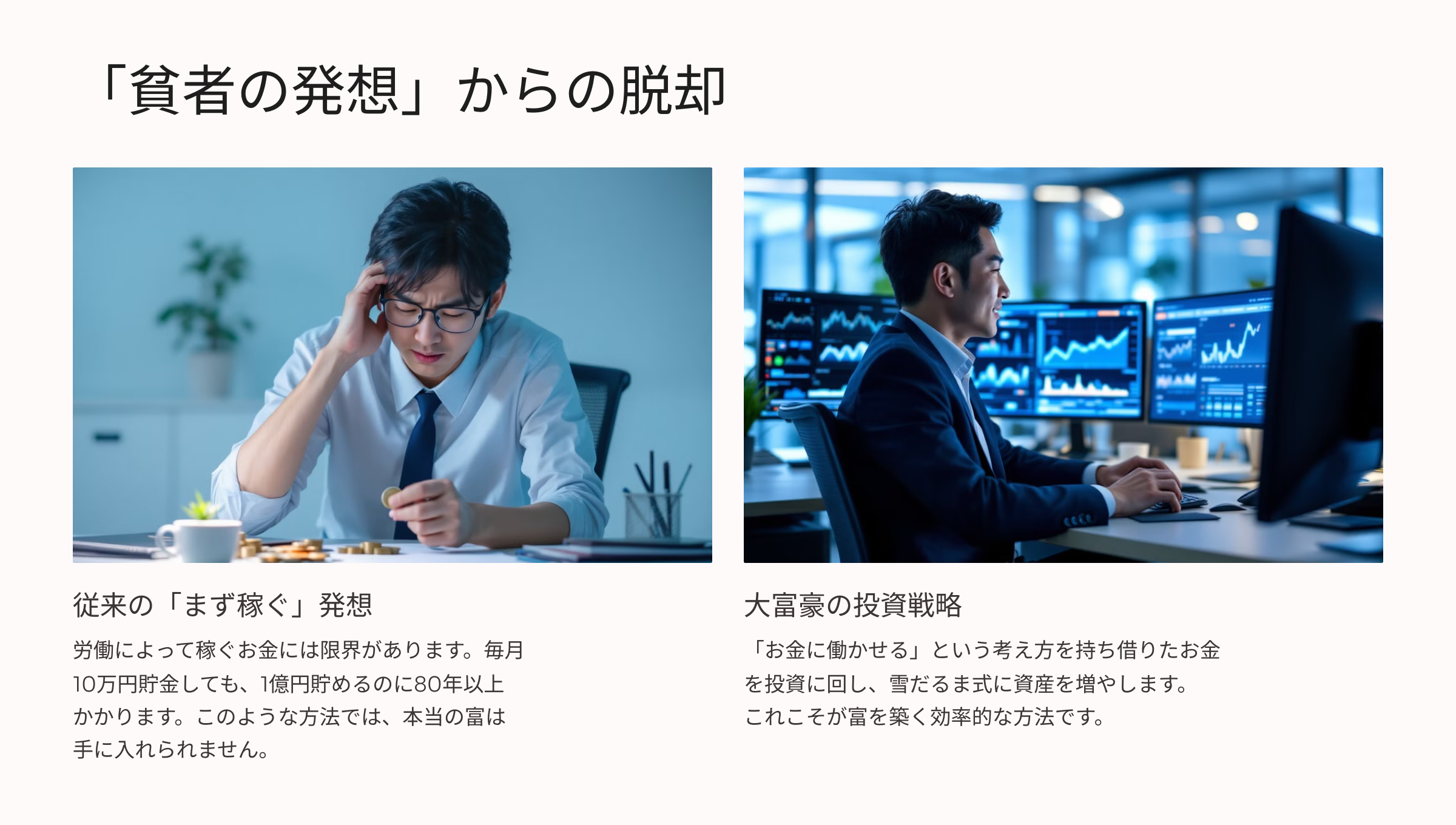 この「大きなお金を借りる」という行為は、単なる借金ではなく、一種の投資戦略だと捉えるべきかもしれません。