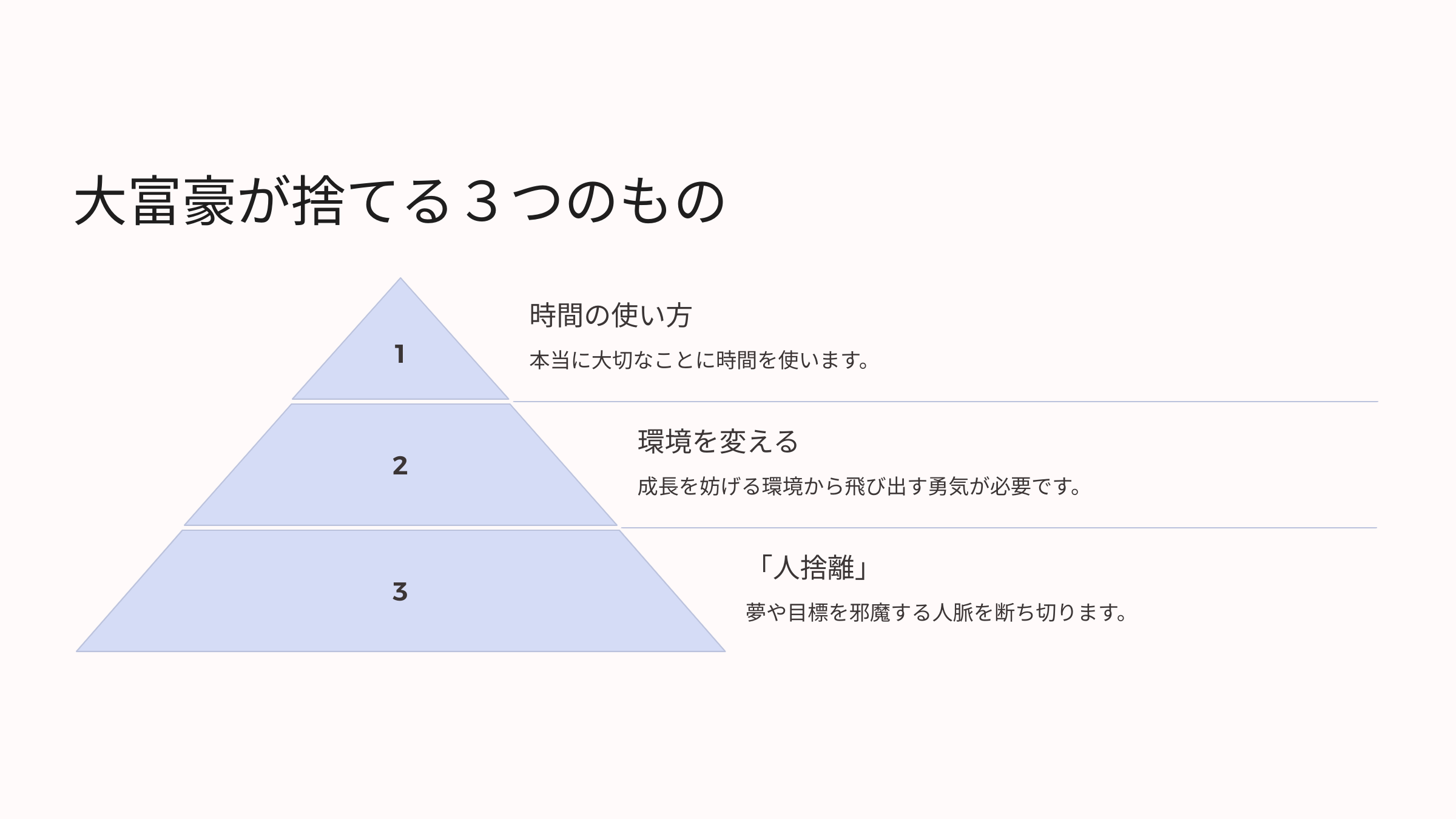 大富豪は、成功するために、以下の3つのものを捨てていると、本書では語られています。